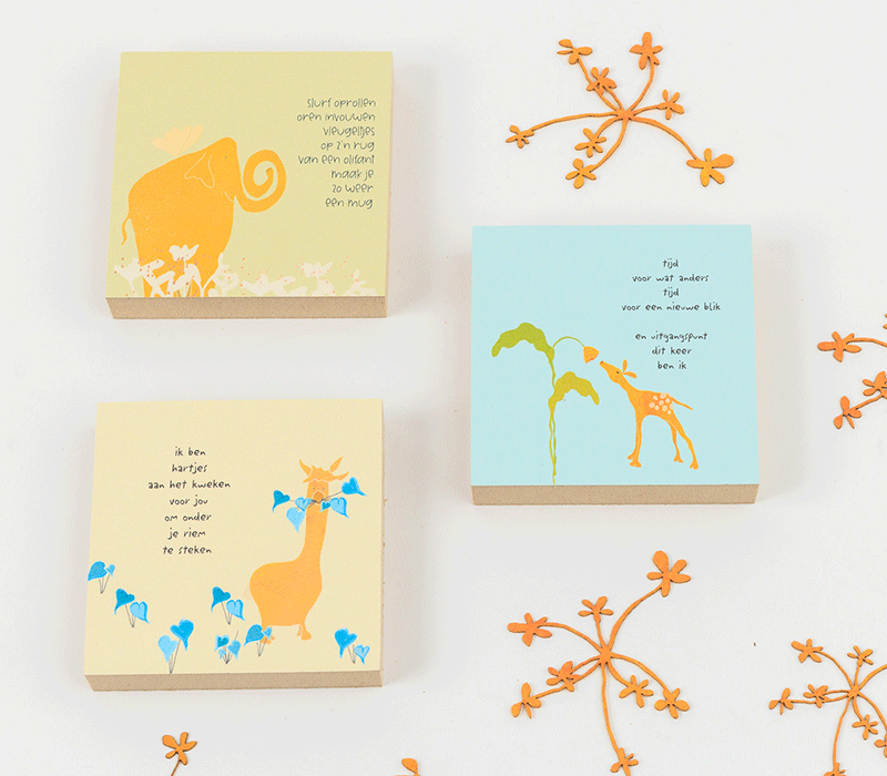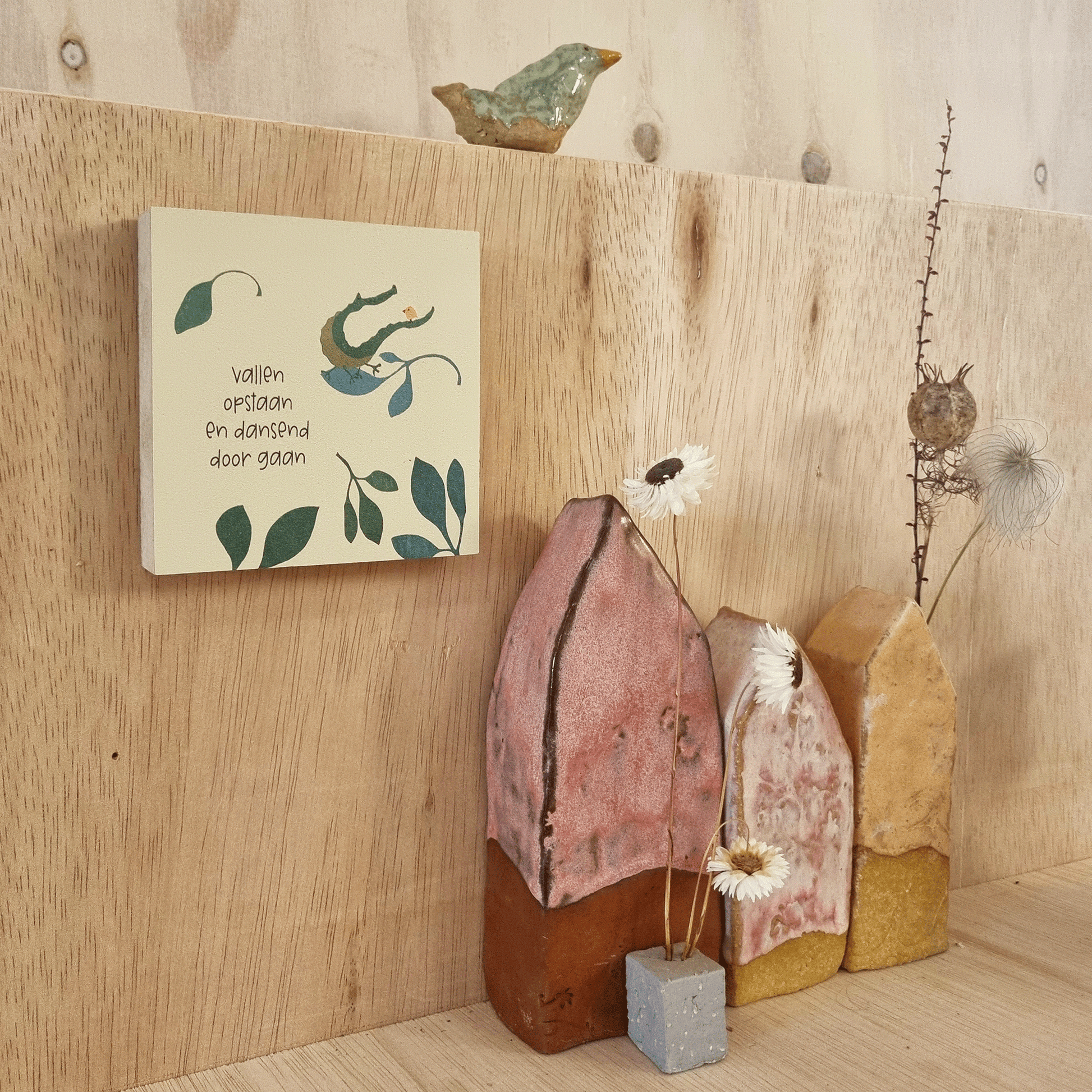het blokje van mdf heeft aan de achterkant een gaatje, waardoor deze makkelijk op te hangen is