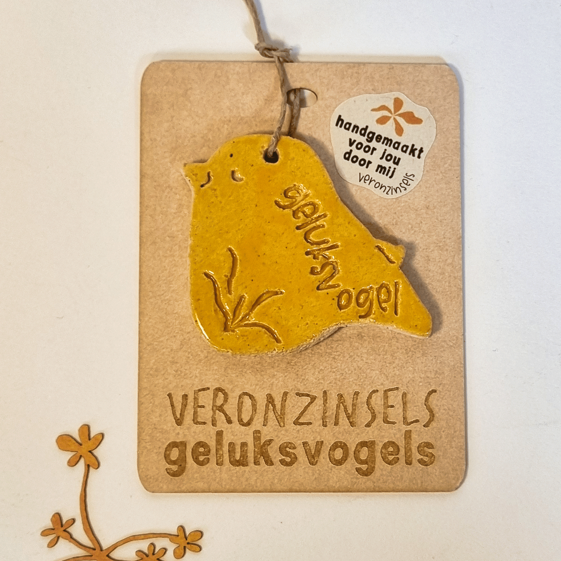 met het koordje kan je de geluksvogel op een mooi plekje hangen
