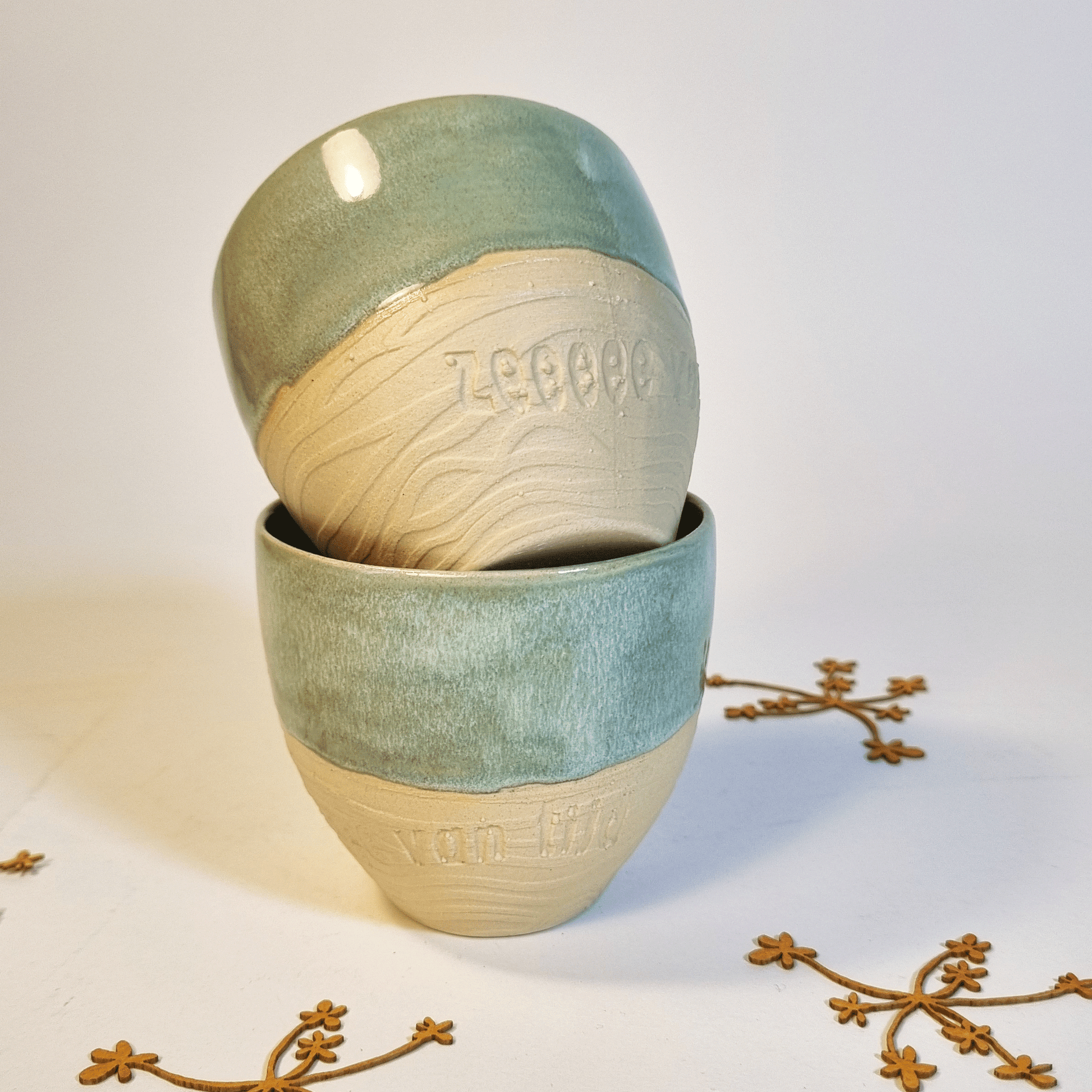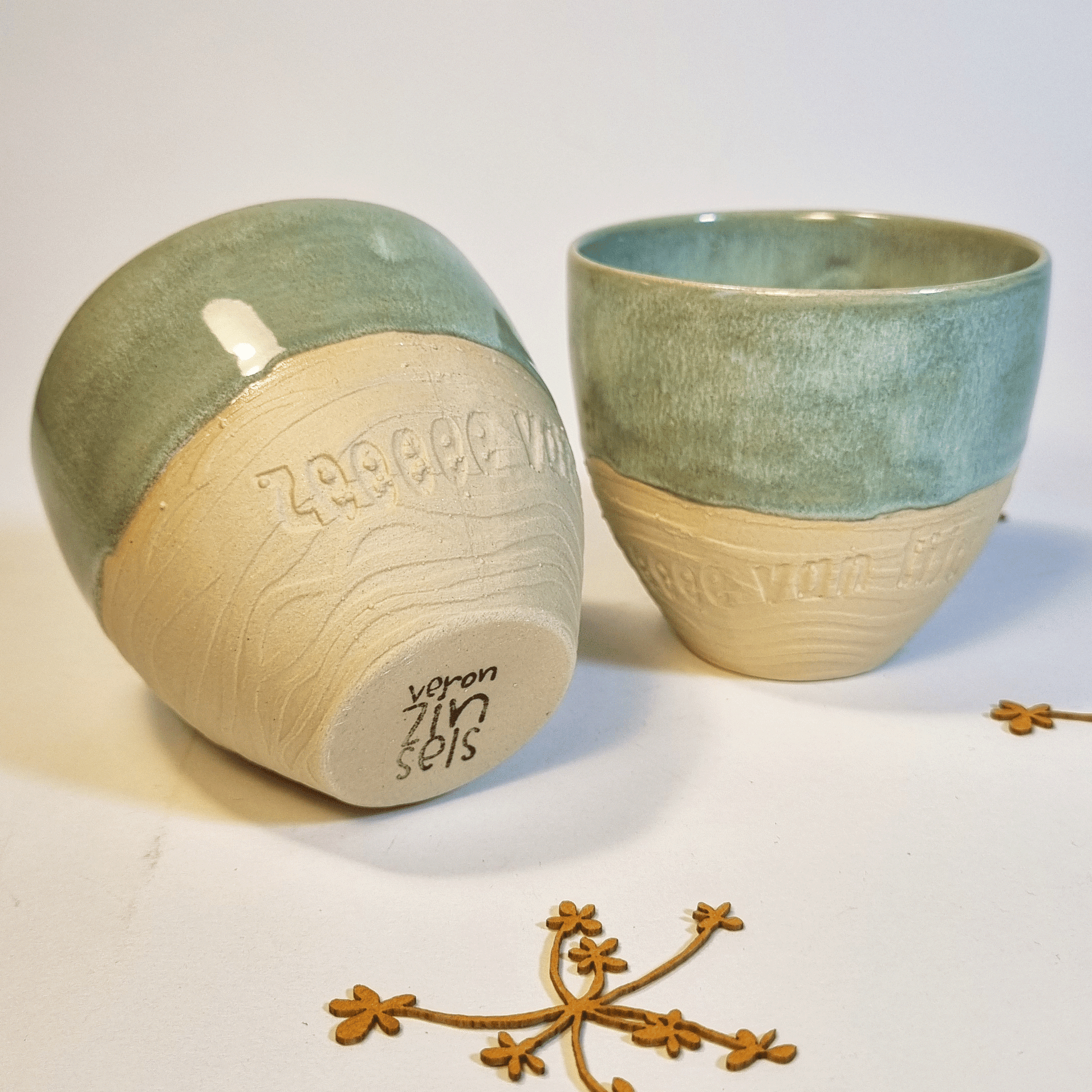 ik heb deze mokken in mijn atelier gegoten, geglazuurd en gedicht