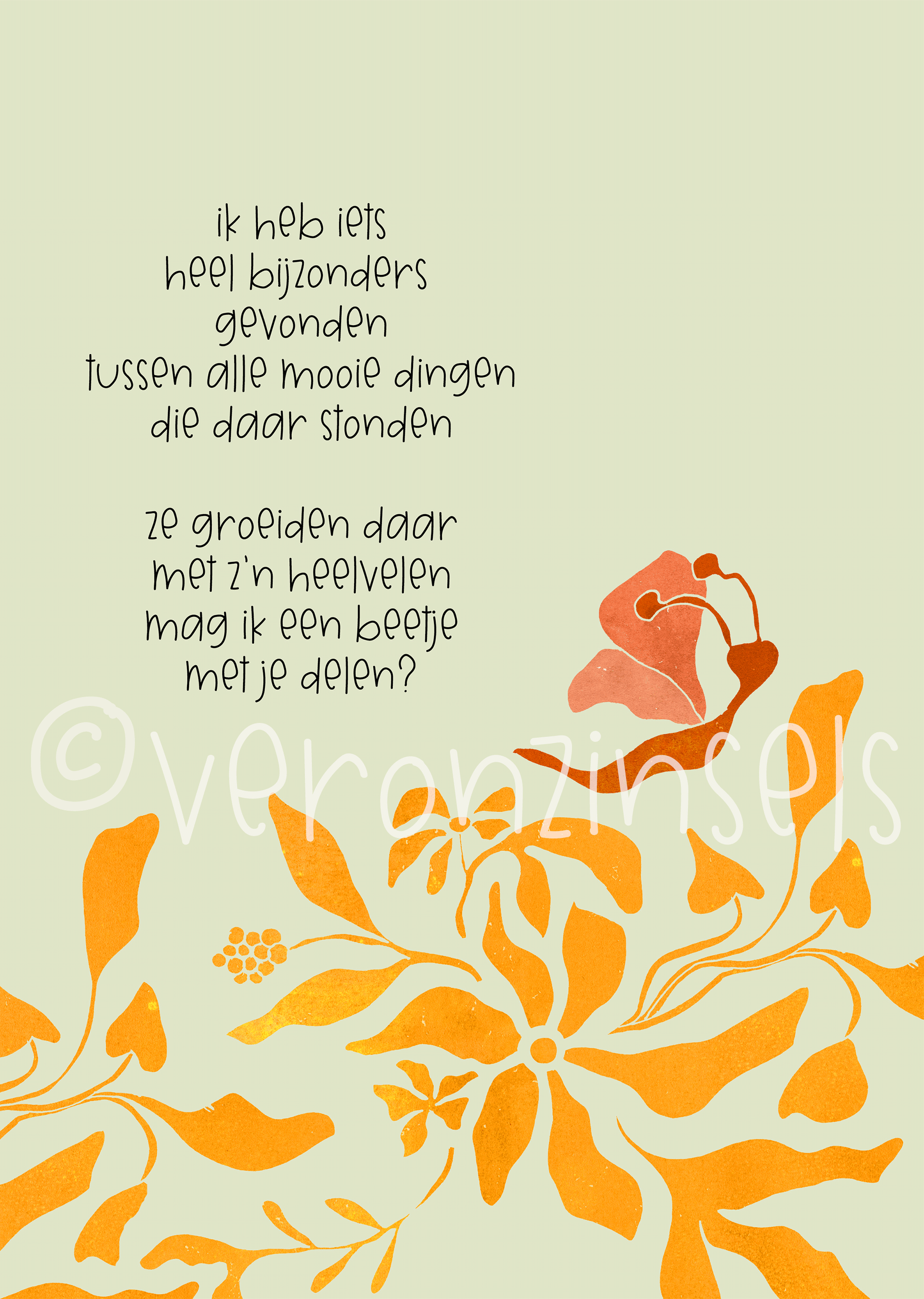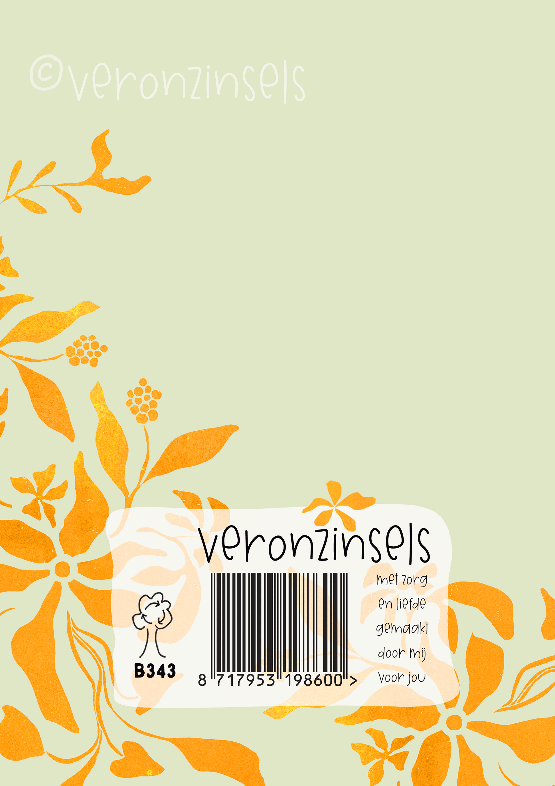 dit is een dubbelgevouwen wenskaart van 10,5 x 15 cm, met bedrukte envelop