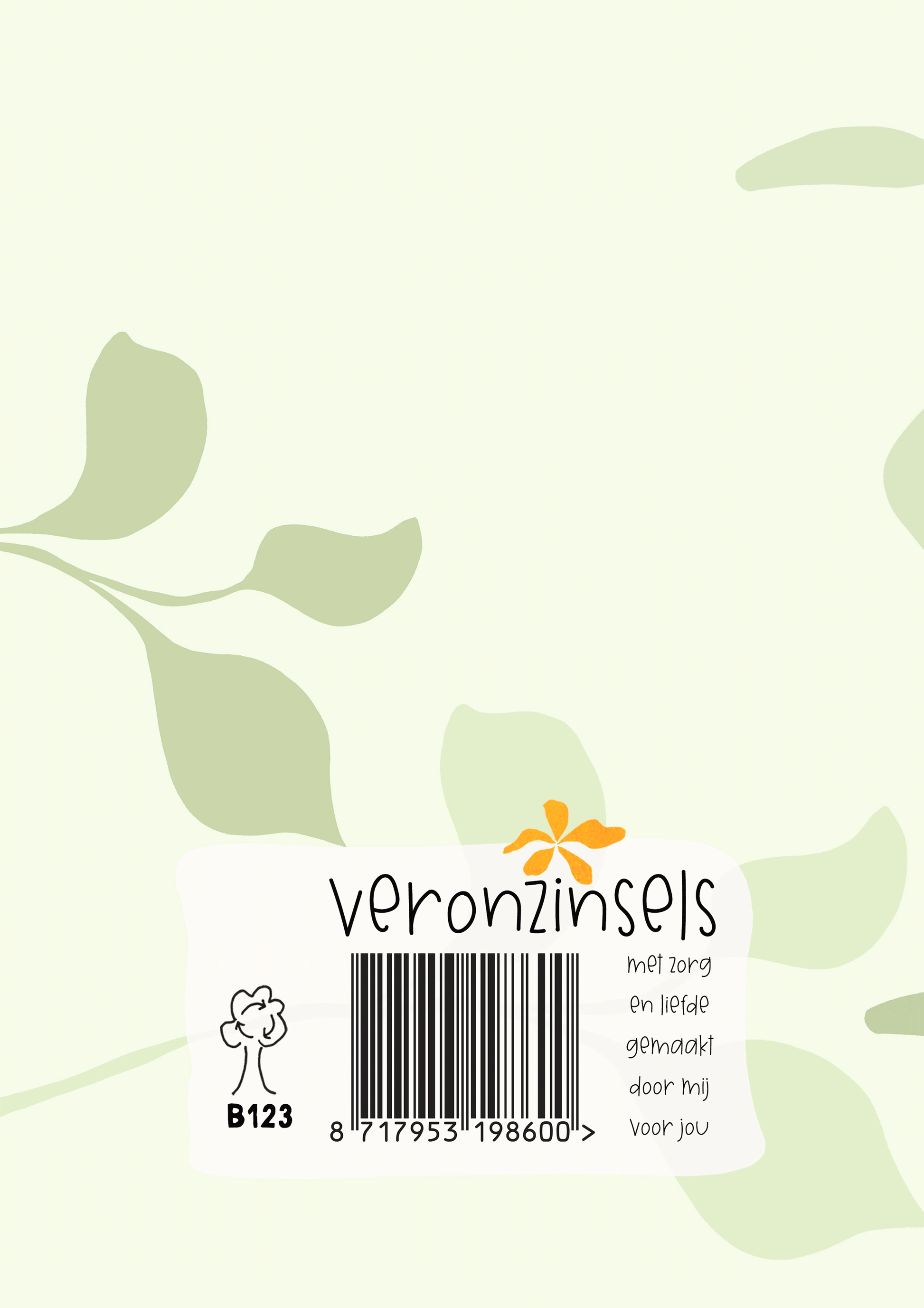 dit is een dubbelgevouwen wenskaart van 10,5 x 15 cm, met bedrukte envelop