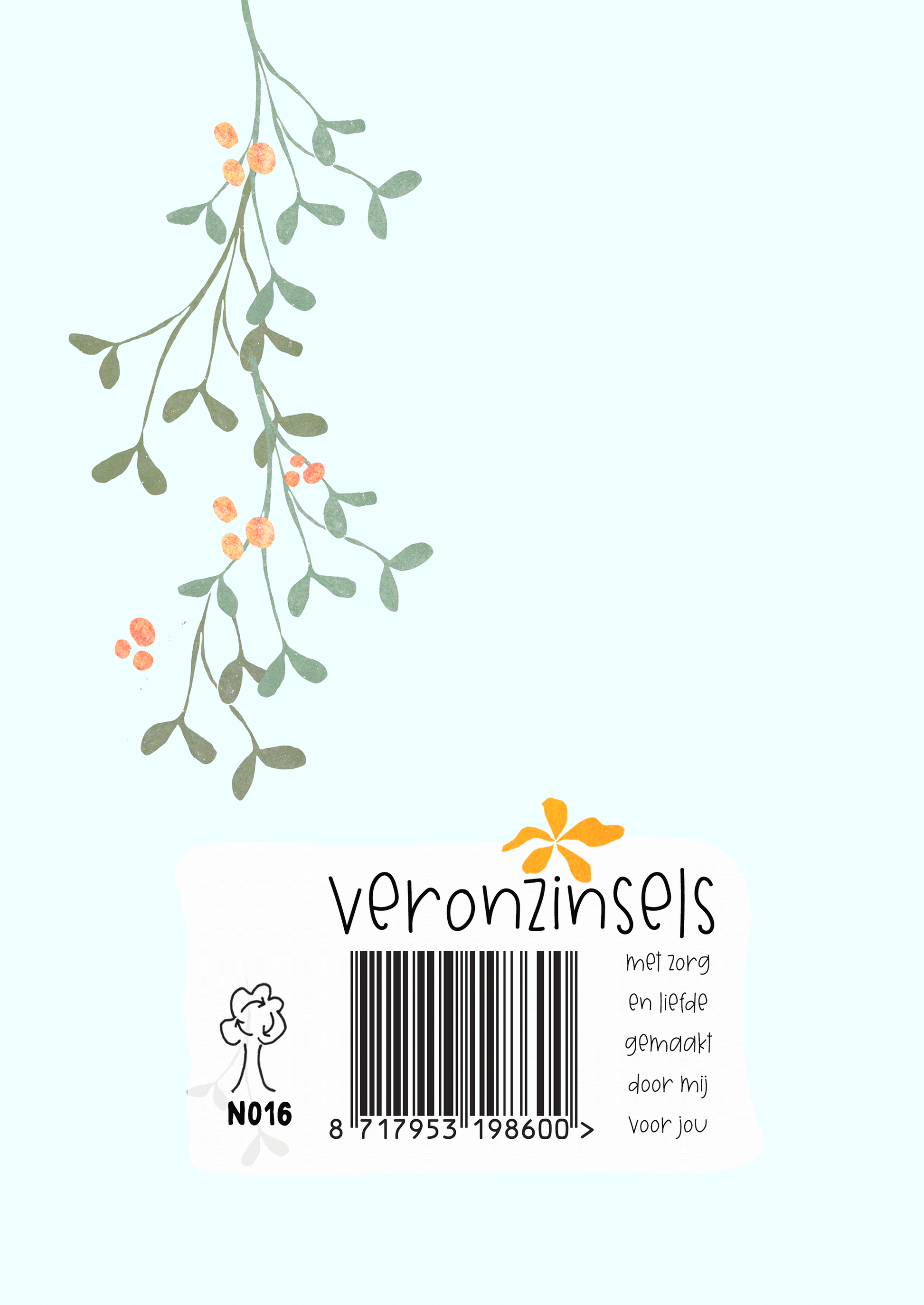 dit is een dubbelgevouwen wenskaart van 10,5 x 15 cm, met bedrukte envelop