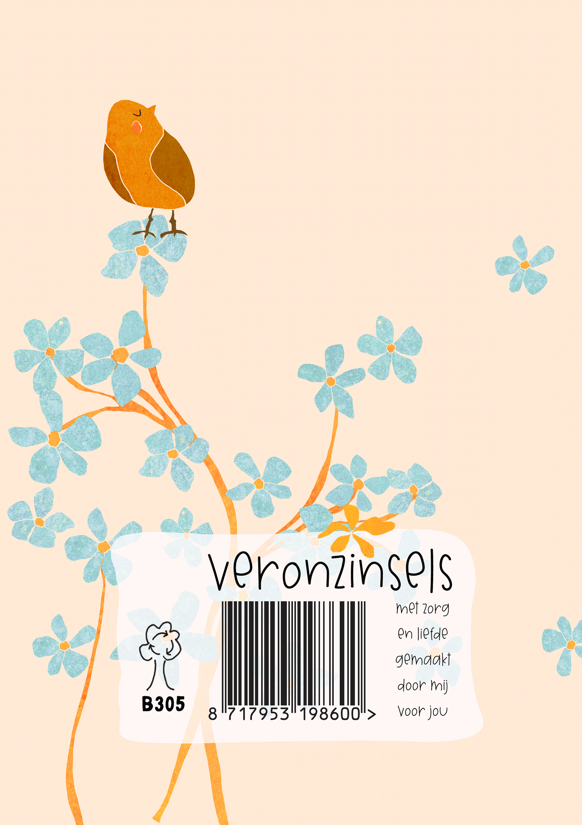 dit is een dubbelgevouwen wenskaart van 10,5 x 15 cm, met bedrukte envelop
