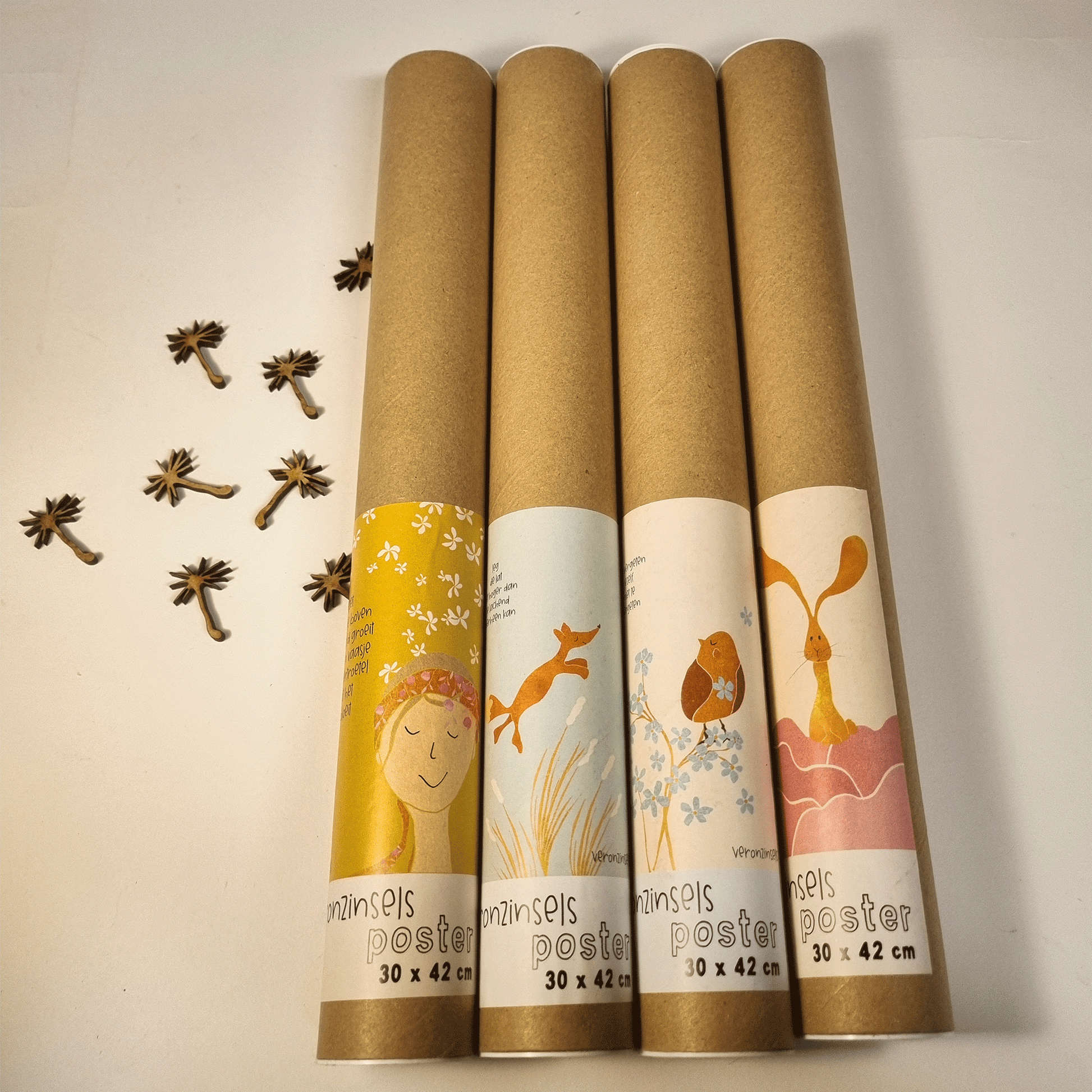 de poster is gedrukt op stevig papier, en wordt opgerold geleverd in een stevige kartonnen koker